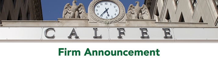 Calfee, Halter & Griswold LLP is a full-service corporate law firm with 160 attorneys and professionals and five offices in Cleveland, Columbus, Cincinnati, Indianapolis, and Washington, D.C. Calfee serves clients in the Midwest, nationally and globally in the areas of Corporate and Finance, Employee Benefits and Executive Compensation, Energy and Utilities, Estate and Succession Planning and Administration, Government Relations and Legislation, Intellectual Property, Investment Management Law, Labor and Employment, Litigation, and Real Estate Law. A founding member of Lex Mundi, Calfee offers international representation through a network of independent law firms with access to 22,000